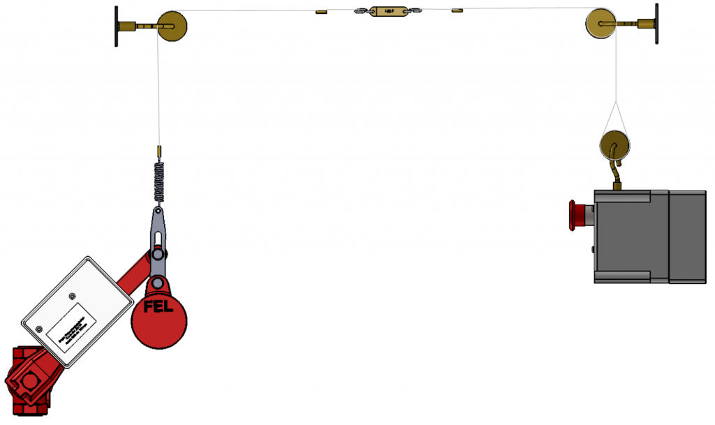 10. Ensure the catenary wire is sitting within the pulley wheel groove and lift the Fire Valve Lever and determine the length of cable required to hold the lever in the raised position.